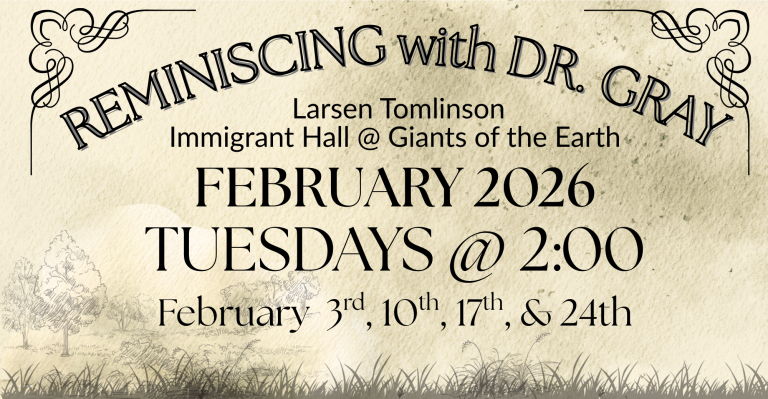 Dr Gray is looking forward to seeing a lot of folks on Tuesdays at 2:00 in February at the Heritage Center. If this is your first year to attend, be assured that the atmosphere is very relaxed and people talk about what they know best-their very own experiences, or stories their family passed down. About 3:00 p.m., we take a break for decaf coffee and a home-made treat before finishing the afternoon about 4:00, or a little after.